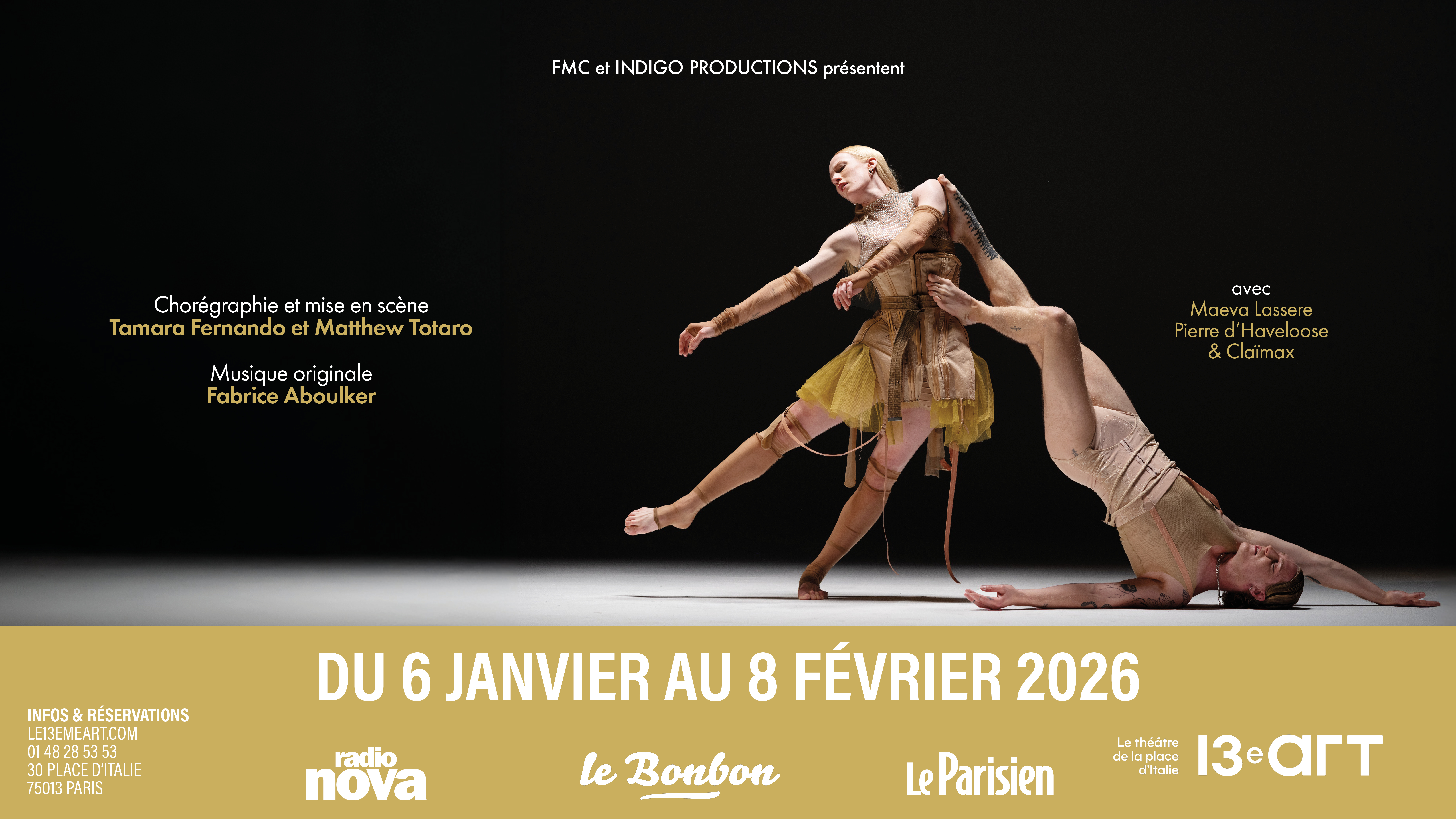 Les vidéos de Matthew Totaro, qui a participé à la chorégraphie, s’intègrent parfaitement au récit auquel elles donnent une remarquable vitalité. La musique de Fabrice Aboulker accompagne cette exploration gestuelle, créant une atmosphère sonore enveloppante qui contraste avec la densité dramatique de la représentation.