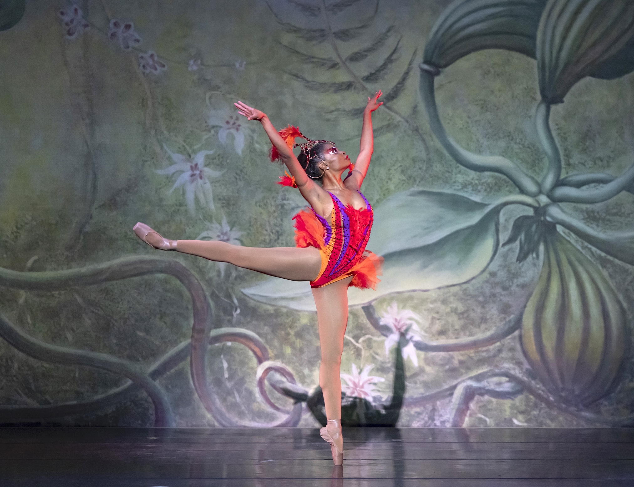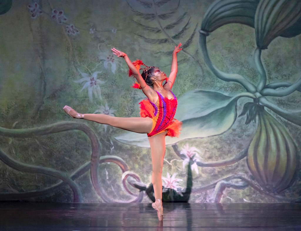 Parallèlement, la compagnie propose « Firebird », remise en scène exceptionnelle de ce chef-d’œuvre créé en 1982. John Taras avait chorégraphié ce ballet en puisant dans la mythologie russe ; Geoffrey Holder, artiste trinidadien devenu légende, l’avait métamorphosé en vision caribéenne flamboyante. Ses décors et costumes d’or et de plumes transformaient le conte en jungle d’orchidées. Cette reconstruction, supervisée par Leo Holder et la succession de son père, préserve intégralement cette vision originelle.