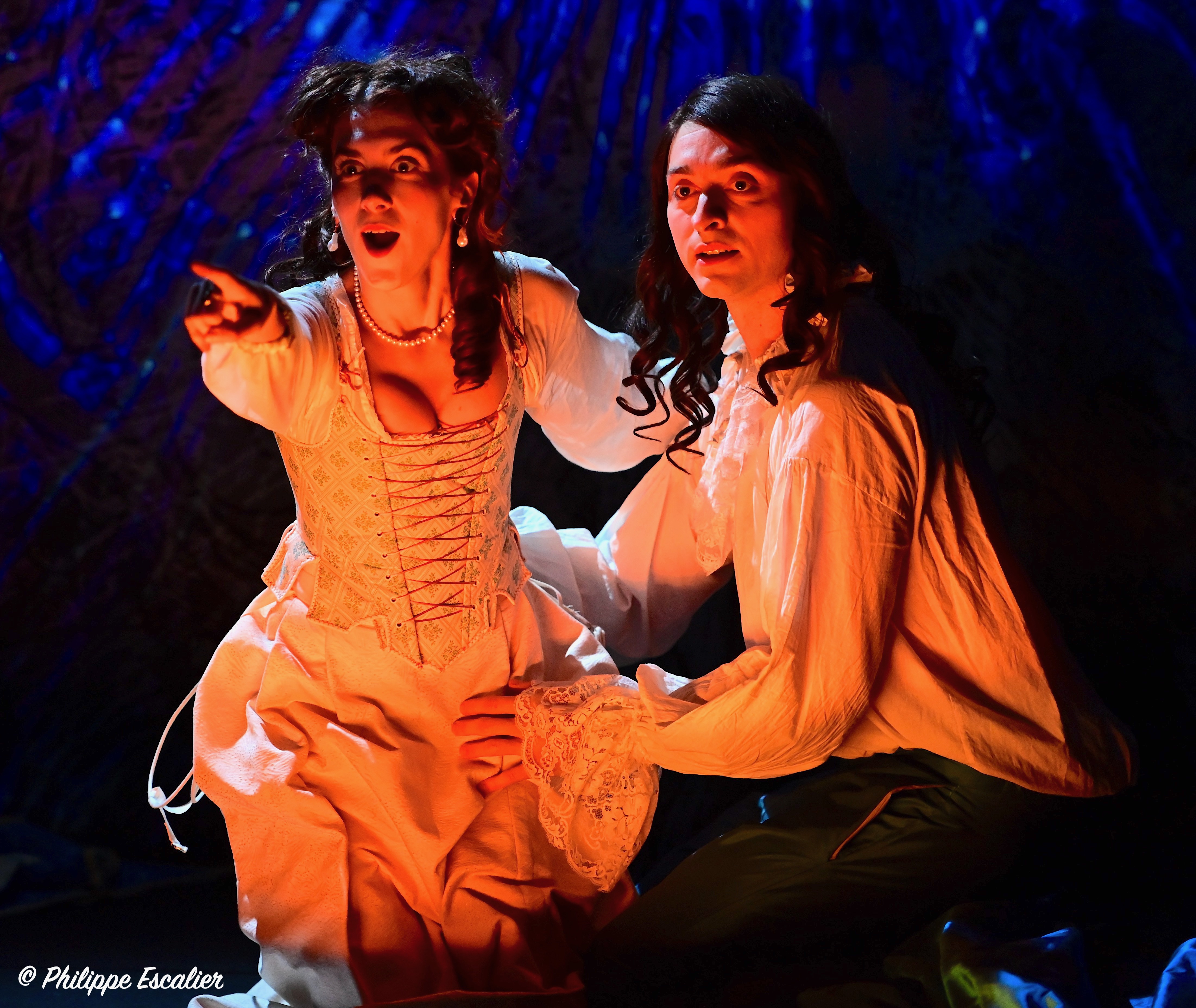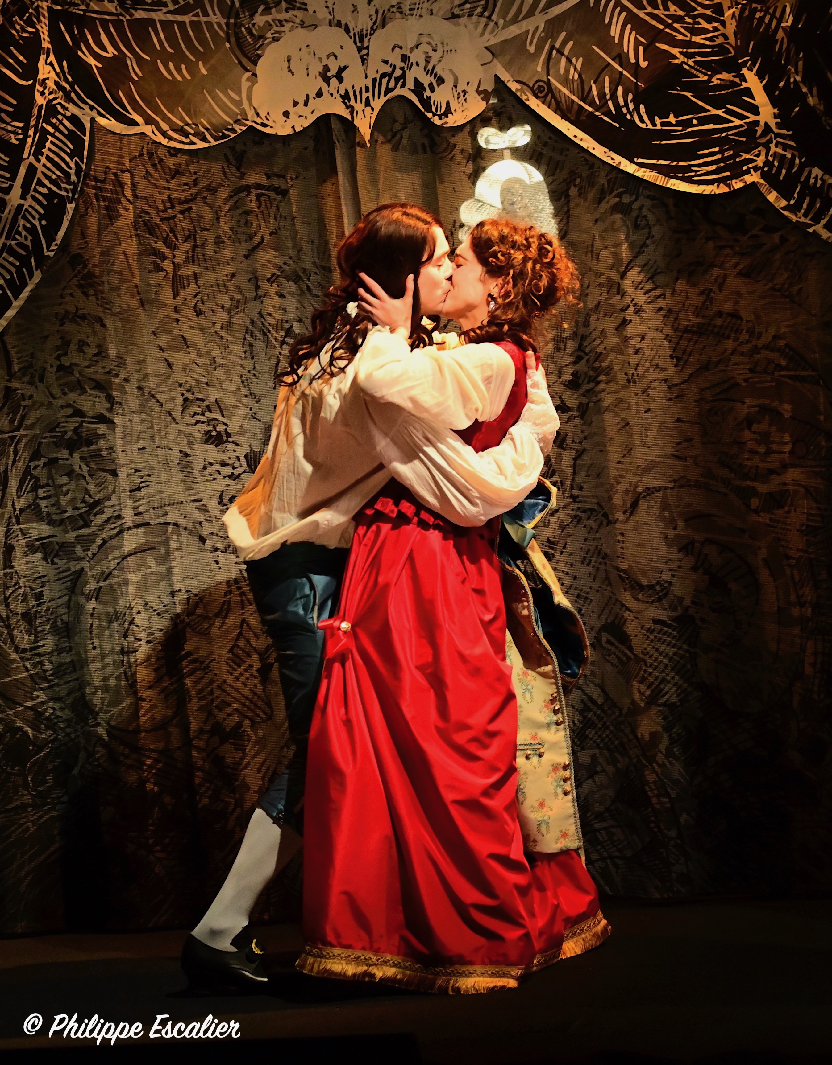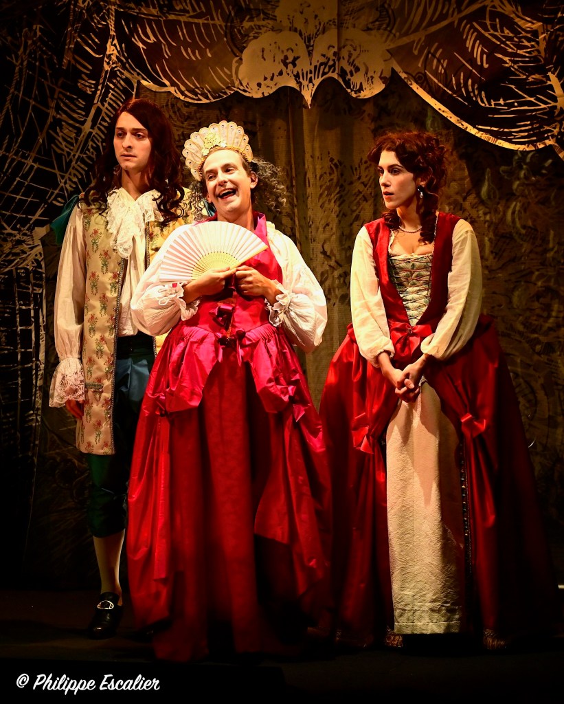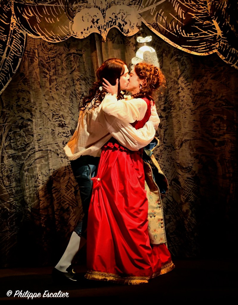 C’est le texte documenté et plein de vie de Jean Teulé que Salomé Villiers a adapté pour le théâtre avec un savoir-faire remarquable. Le défi visant à concentrer 44 ans, 26 personnages et de multiples lieux a été relevé haut la main grâce notamment à une mise en scène d’Etienne Launay étonnement inventive et dynamique qui grandit la scène du théâtre de la Huchette en donnant au spectateur le sentiment de changer de lieux sans cesse et de vivre pleinement chaque situation. En totale osmose avec ce travail très abouti, les comédiens sont d’une justesse absolue. Dans le rôle titre, Simon Larvaron a une allure « Grand Siècle » qui ne manque pas de surprendre. Amoureux ou désespéré, il se fond dans la peau de son personnage avec une facilité déroutante. Face à lui, Salomé Villiers, très touchante, est elle aussi tout en retenue et en intensité. Michaël Hirsch, quant à lui, prouve qu’il peut jouer tous les rôles, facétieux ou sérieux, serviteur ou souverain, tout lui convient. Ces trois là sont de nature à nous captiver et à nous séduire au point qu’en leur compagnie l’on en oublie le temps qui passe. Car cette belle leçon d’Histoire est aussi et avant tout un beau moment de théâtre, intimiste, envoutant et divertissant.