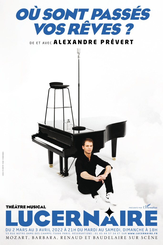 Voir Alexandre Prévert au Lucernaire c’est être sûr de commencer avec cet artiste musicien surdoué à la sensibilité à fleur de peau une histoire d’amour digne de Barbara et de bien d’autres. « Où sont passés vos rêves » est un superbe moment à voir et à revoir !