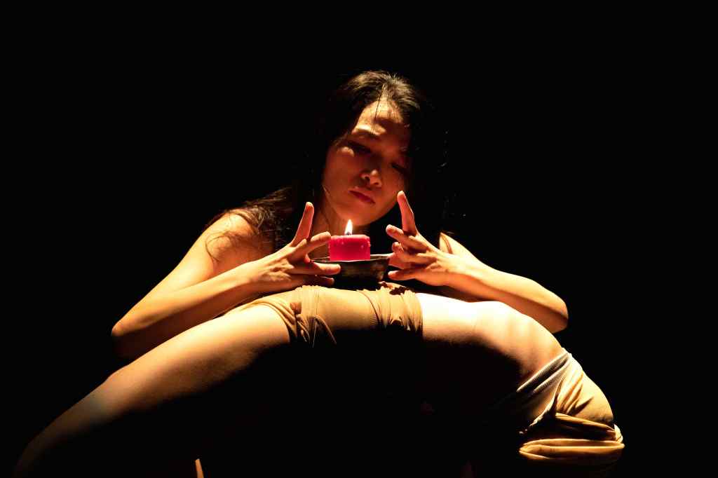 Croiser des troupes ou des compagnies venues de l’autre bout de la planète est l’un des charmes du festival OFF. La rencontre avec la compagnie taïwainaise Tai Gu Tales Dance est un moment rare qui a commencé, comme souvent durant le festival, dans les rues de la ville au cours d’une de ces fameuses parades de présentation durant laquelle les danseurs jouent avec des tissus dans des couleurs ocres harmonisées à leur bronzage. Dans la salle ronde de La Condition des Soies, les choses sont un peu différentes. Un éclairage à la bougie maintient les intervenants dans une obscurité quasi générale imposée par les thèmes du ballet, à savoir le corps de la mère, la naissance, le parcours de vie puis l’effacement final. « The Back of Beyond » a été jouée pour la première fois en 1991 puis remaniée en 2019 par la chorégraphe Hsiu-Wei Lin. Dans cette nouvelle version, l’esthétique est très épurée, l’essentiel seul apparait. Les mouvements alternent entre une lenteur silencieuse et des séquences énergiques et sonores mais l’on retient surtout cette beauté hiératique qui captive toute notre attention, offrant à nos yeux des moments d’une grande beauté. Peu importe alors que les novices en danses asiatiques que nous sommes hésitent parfois quant au sens à donner. Du reste, tout est fait pour laisser une place au rêve et à l’imagination. En cette chaude après midi d’été, WU Tsai-Lin, TSAI Yun-Shan, LIANG Shu-Ning, CHU Po-Cheng, LIN Yi-Yuan, LEE Hsuan-Lung à qui nous devons rendre hommage, ont su nous apporter à travers leur superbe spectacle, un moment de dépaysement total et plus encore, l’envie de découvrir et mieux connaitre l’art de la danse venu de Taïwan.