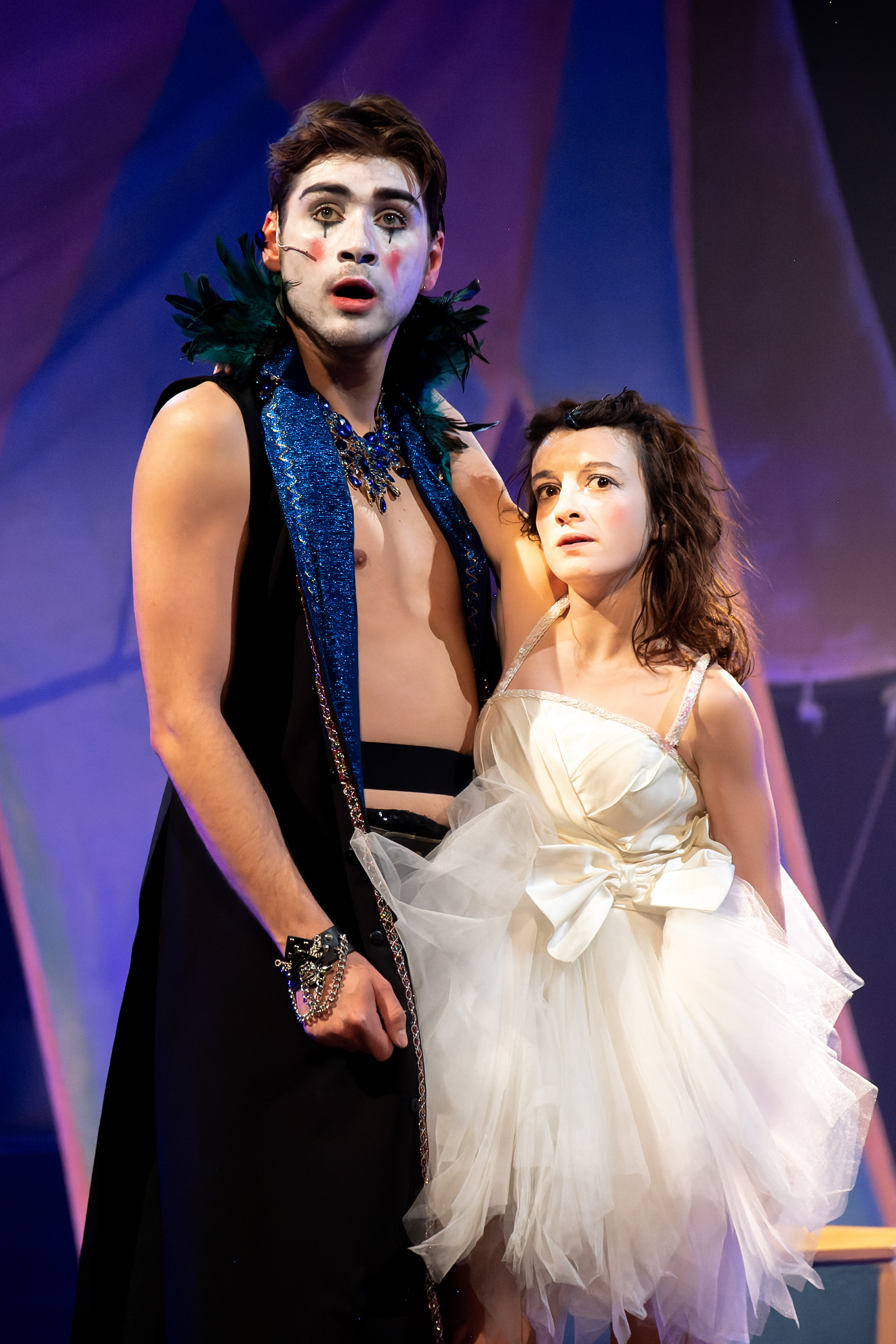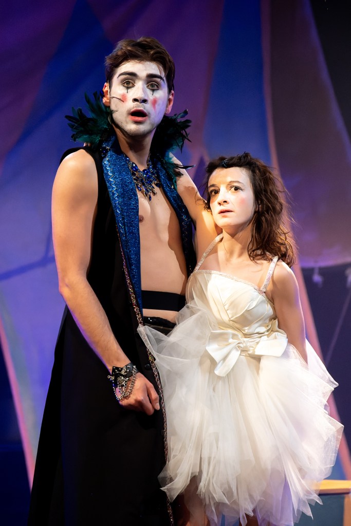 L’une des traditions des Épis Noirs est de s’attaquer à nos grands mythes fondateurs. Avec visiblement un goût particulier pour Racine. Après « Andromaque », les voici en train de revisiter « Britannicus ». De fond en comble. Poésie, burlesque et musical sont les armes avec lesquelles Pierre Lericq (auteur, metteur en scène assisté de Bérangère Magnani) et sa troupe dézinguent celui qui, avec Corneille, est le plus grand de nos classiques. L’œuvre de Racine n’est qu’un prétexte à plus d’une heure de spectacle absolument déjanté. Certes, les personnages de la tragédie sont là mais ils disent leur propre texte pimenté de quelques alexandrins dans une ambiance de cirque assez fellinienne, où le clown serait roi. Imaginez-vous en mai 68 après JC. Si l’on résume l’intrigue, vous allez dire : « Mais c’est quoi ce cirque ? ». Et c’est là que les Epis Noirs interviennent. Pierre Lericq installe le théâtre dans le théâtre et, en Monsieur Loyal, conduit son petit monde, association d’intermittents du spectacle ratés, à coups de fouet, vantant auprès du public ses qualités de dresseur. Une dureté indispensable pour tenir ces artistes enivrés par la scène, toujours prêt à donner le bras quand on ne leur demande que la main. Tout est massivement surligné et pourtant, rien n’est excessif. Il n’est pas si exagéré de penser que cet ouragan rock et circassien pourrait être bien plus proche de l’auteur qu’on ne le croit. Mais oublions Racine, devenu ici roi des Punks et restons avec nos personnages lunaires et loufoques. Britannicus reste séduisant, pas seulement parce qu’il a l’apparence de l’excellent Jules Fabre mais parce qu’il touchant en grand ado inconscient, trop cool, amoureux de Junie qu’il préfère au pouvoir. Face à lui, Néron prend les traits de Tchavdar Pentchev qui est au centre du show auquel il contribue à donner avec brio, toute son intensité. Inquiétant maître chanteur, inhumain, rendu narcissique et violent par l’amère Agrippine que Marie Réache transforme avec talent en folle furieuse, sorte de mante religieuse incestueuse, obsédée par l’idée de mettre son fils sur le trône. Pour cela, elle prépare une omelette empoisonnée pour le malheureux Claude. Morale : on ne fait pas de coup d’État sans casser des œufs. Mais Néron veut, quoique marié, être aussi uni à Junie à laquelle Julie de Ribaucourt prête son art et sa grâce pendant que Gilles Nicolas, serviteur obséquieux est occupé à décrire tout haut le moindre de ses mouvements.