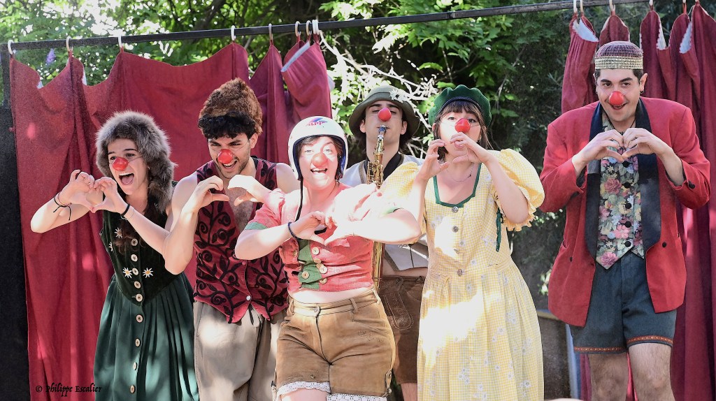 « Funambules », c’est le clown dans toute sa splendeur et dans toute sa magie. Six artistes formés à L’Accademia Internazionale di Teatro, portant nez rouge et sachant divertir avec un sens de la poésie hors du commun. Personne, comme eux, ne sait danser sur la corde fine de l’absurde. Cette troupe, formée à L’Accademia Internazionale di Teatro, basée Rome, mais jouant un peu partout dans le monde, vient nous proposer une série de sketches où l’imagination et le rire sont rois. Avec un jeu tout en subtilité, toujours d’une incroyable légèreté, ils nous proposent notamment un curieux tour de magie, un concours de dessin délirant, un match de tennis très particulier, un épisode de Roméo et Juliette doublé de façon irrésistible. Chaque moment est particulier, foncièrement jubilatoire et vient enchanter les grands enfants que nous sommes restés.