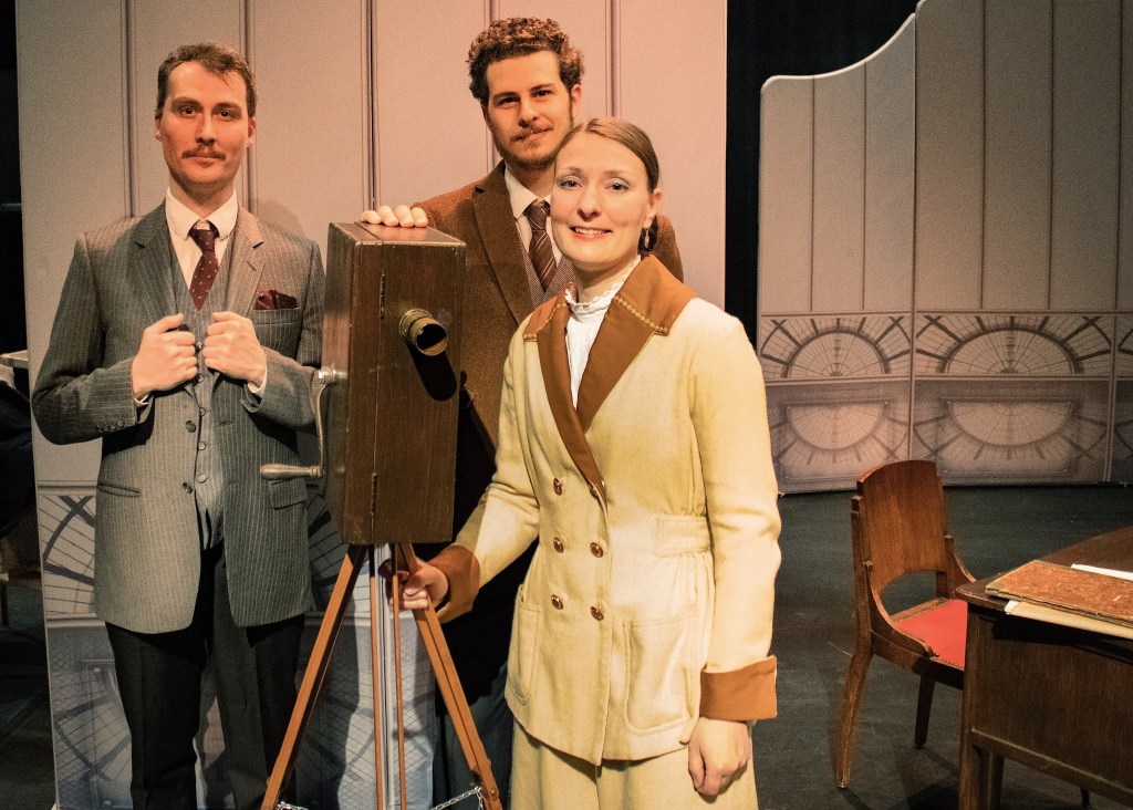 Le récit qui nous est présenté fait appel à des projections d’images fixes ou animées. On assiste au balbutiement de l’art cinématographique, à une époque où un film de six minutes faisait figure de long-métrage. Sur le plateau, trois comédiens, l’autrice, Lennie Coindeaux (les deux ayant cosignés une mise en scène agile et très visuelle) et Jérémie Hamon jouent avec un naturel très efficace qu’Alice Guy qui demandait instamment à ses acteurs américains « Be Natural » n’aurait pas désavoué. Tous trois nous offrent un beau moment de théâtre qui ajoute à ses qualités, une belle vertu pédagogique.