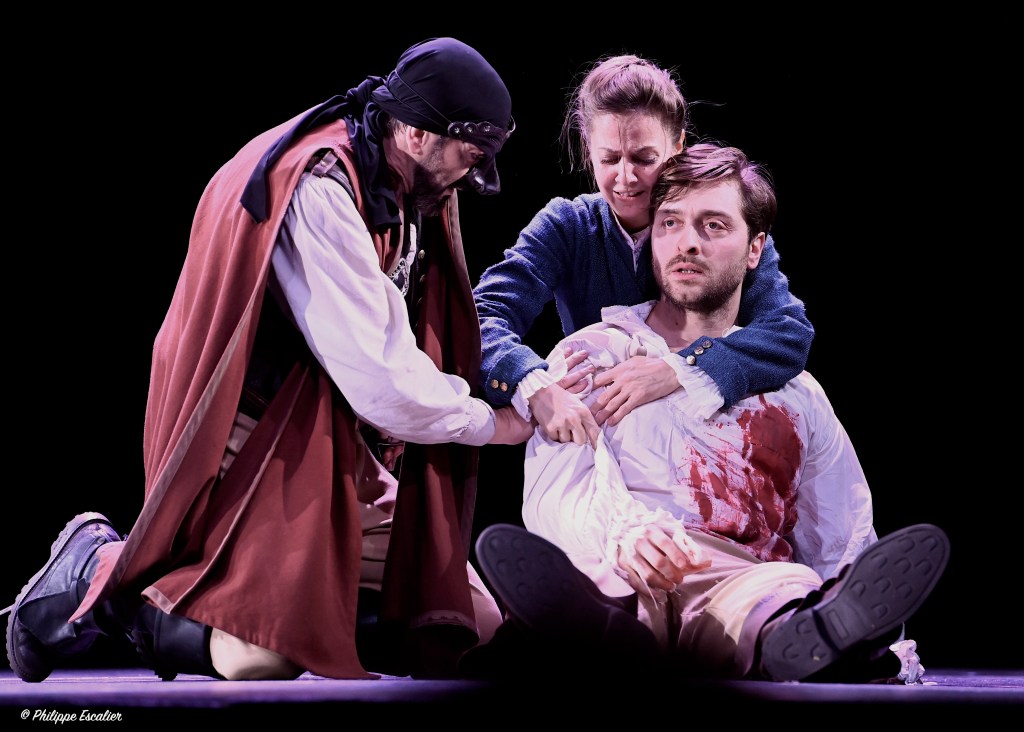Tout cela ne serait rien sans le brio d’une distribution exemplaire. Visiblement heureux de jouer ensemble, les comédiens excellent, menés par Stéphane Dauch, parfait dans ce magnifique personnage de Cyrano, terrorisant les hommes mais tremblant devant Roxane incarnée si bien par Barbara Lamballais. Simon Larvaron nous donne à voir le Christian idéal, beau, naïf, quoiqu’au final, assez lucide. À leurs côtés, Xavier Lenczewski, Didier Lafaye, Matthieu Gambier, Philippe Blondelle, Mona Thanaël, Christophe Mie et Grégoire Bourbier, accompagnés par les notes jouées par Petr Ruzicka, sont parfaitement à l’unisson. Ils nous apportent la preuve vivante que l’acteur est un véritable dispensateur de bonheur !