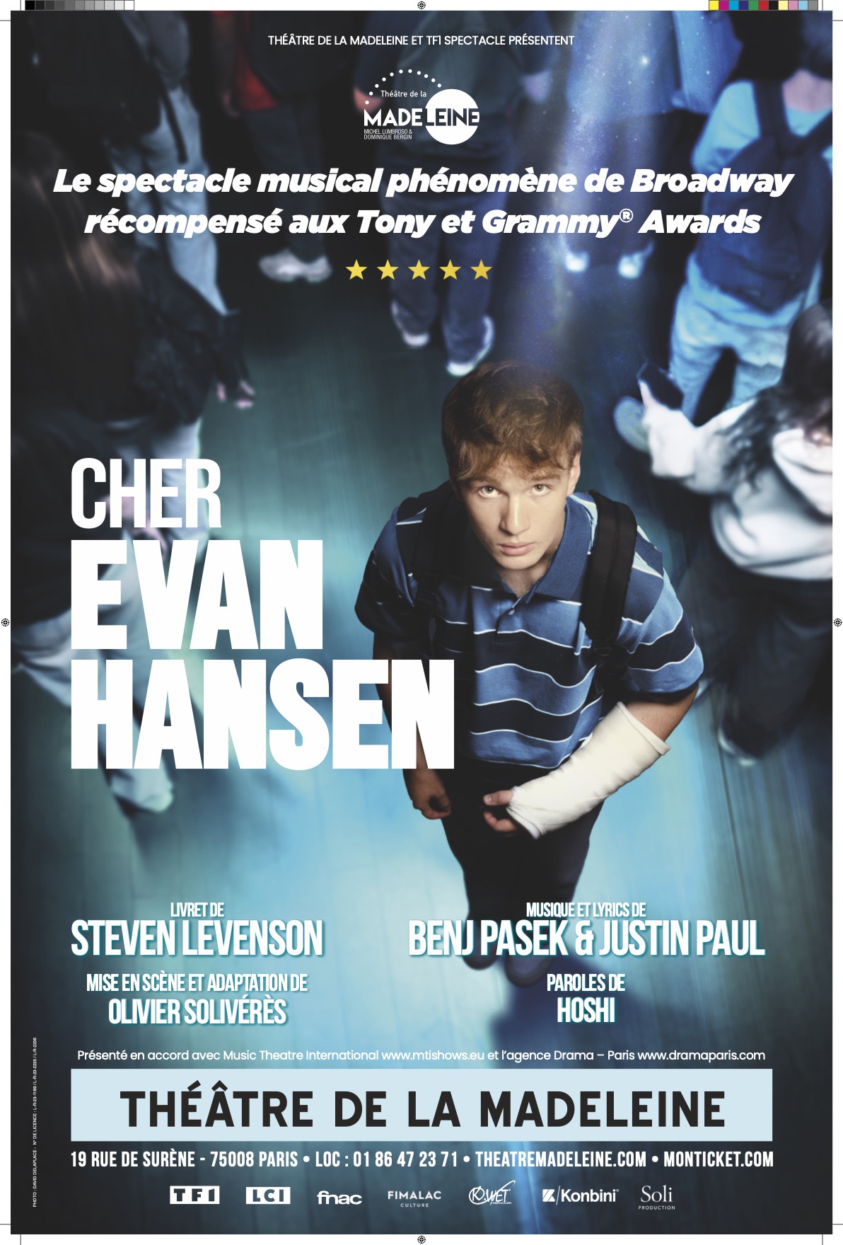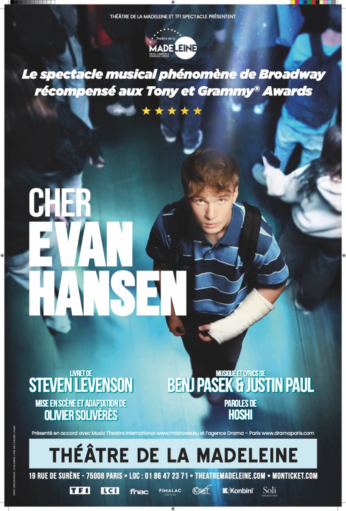 Désireux d’imprimer sa marque comme il l’a toujours fait, Olivier Solivérès choisit Jennifer Barre, une jeune directrice de casting qui sélectionne une équipe capable de répondre aux incroyables challenges vocaux de cette comédie musicale, si belle mais si difficile à chanter. « Pour moi, c’était important d’amener et de faire découvrir de nouveaux talents sur scène. Je dois avouer que je suis hyper content car j’ai une équipe dingue, je ne pense pas que j’aurais pu trouver mieux. » Une troupe accompagnée par quatre musiciens sur scène qui va aborder les sujets profonds et contemporains de ce musical avec une sincérité absolue, seule capable de vraiment toucher le public. La solitude, l’anxiété, les réseaux sociaux mais aussi l’amitié, la famille, et l’amour traversent « Cher Evan Hansen », un spectacle hors du commun, poétique, jamais moralisateur, et qui, au fond, nous lance à sa façon un autre vibrant « Carpe diem » !