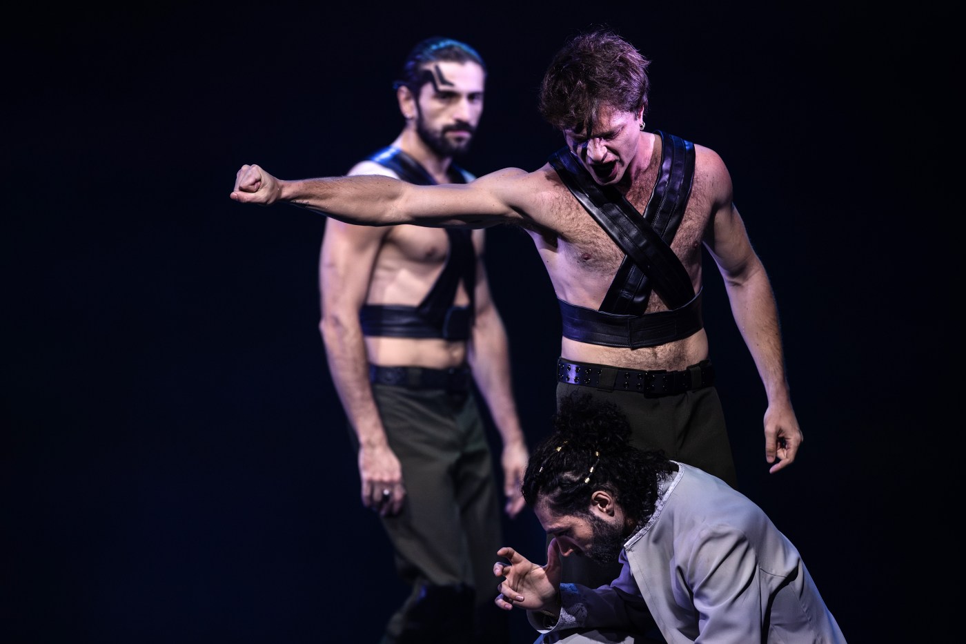 Le dispositif scénique d’une nudité assumée concentre toute l’attention sur l’essentiel : la parole, le corps, l’émotion. Les lumières de Patrice Le Cadre sculptent l’espace et dessinent les zones d’ombre où se trament les vengeances, tandis que les costumes de Frédéric Morel ancrent l’action dans une mythologie intemporelle, où se mêlent les époques et les horizons. Ce dépouillement scénique ne constitue nullement un appauvrissement : il révèle au contraire la puissance architecturale du texte cette géométrie des passions que le poète a agencée avec une rigueur implacable.