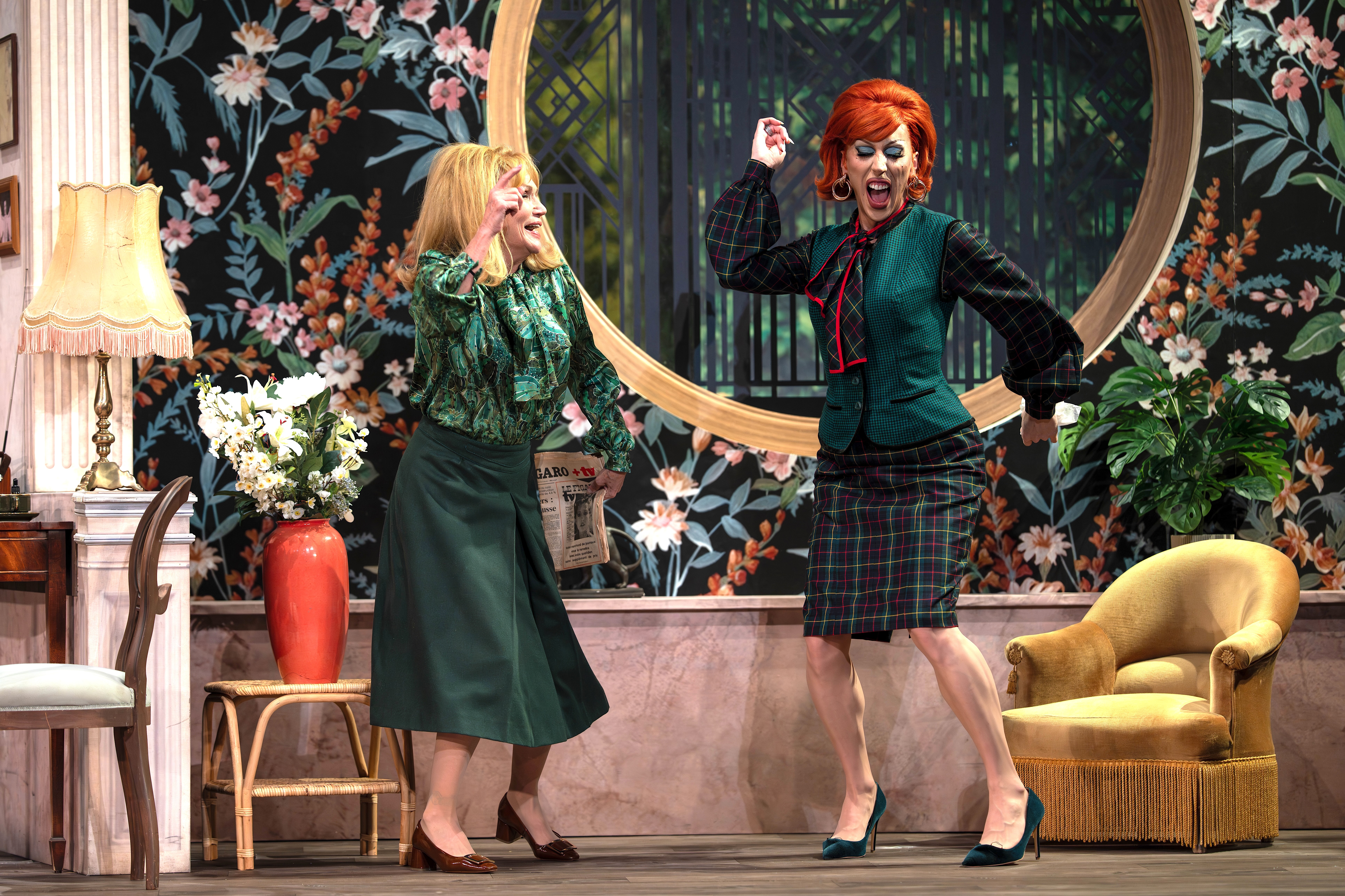 La réussite de « Potiche » tient aussi à la qualité de l’ensemble de la distribution. Jérôme Pouly, Benjamin Siksou et Alexie Ribes composent avec talent ce chœur de personnages qui donnent au spectacle son rythme, son relief et sa saveur collective. Et puis, derrière la réussite de l’ensemble, il y a le regard et le sens du rythme de Charles Templon. Comédien lui-même, passé à la mise en scène avec une curiosité et une rigueur qu’on lui connaît depuis plusieurs saisons, il a su, assisté de Félix Beaupérin, aborder « Potiche » sans nostalgie et sans déférence excessive pour l’original. Son parti pris est clair : restituer toute la vivacité du texte en lui insufflant une énergie contemporaine. La belle trouvaille de confier le rôle de la secrétaire à Hugo Bardin alias Paloma en est l’illustration la plus lumineuse, une idée de distribution qui modernise la pièce d’un seul coup et lui ouvre de nouveaux horizons. Dans cette version légèrement raccourcie, le rythme est soutenu, les enchaînements précis, et la direction d’acteurs révèle une véritable intelligence des personnages. Charles Templon a compris que « Potiche », pour fonctionner aujourd’hui, devait respirer librement et il lui a offert exactement cela : de l’air, de la lumière, et cette électricité de plateau qui fait que le public ne décroche pas une seconde.